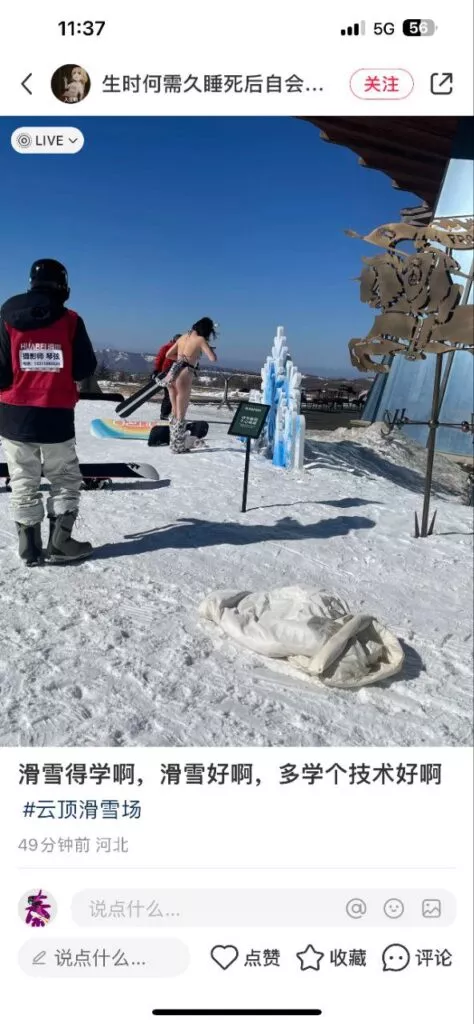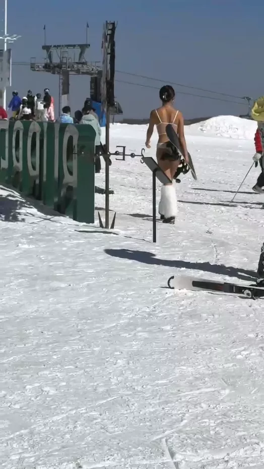鲜扔要冷藏!河北张家口云顶滑雪场再现比基尼美女半果滑雪