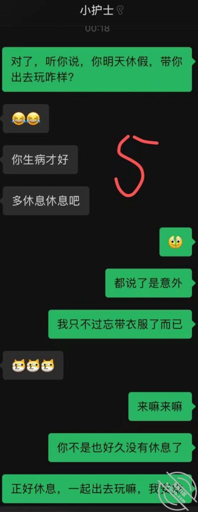 而且平常我点外卖的时候,还会给她点一份,因为外卖不给送上楼,只能让小护士下去拿,一开始的时候我就点了3份,一份给她一份给她一起来查房的那个小护士的。