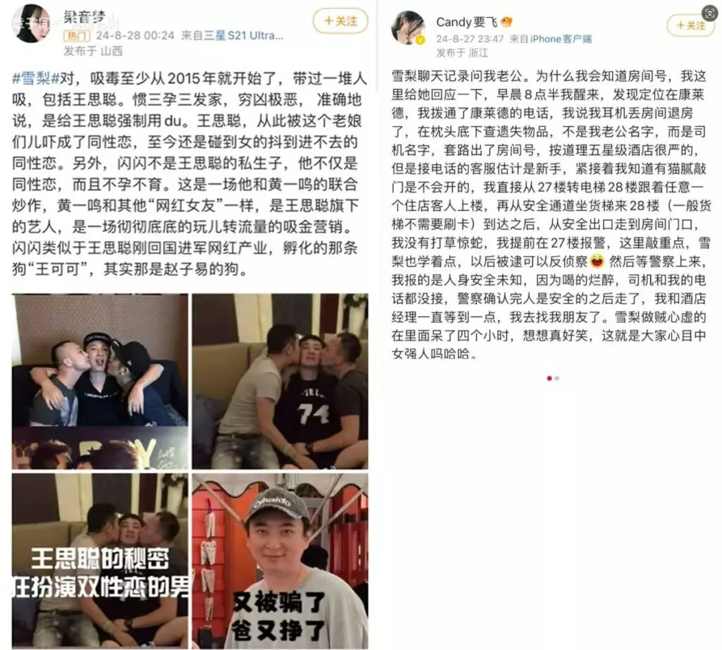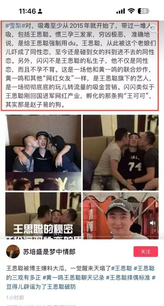 王思聪前女友雪梨被指控吸毒国民老公陷入同性恋绯闻相关事件