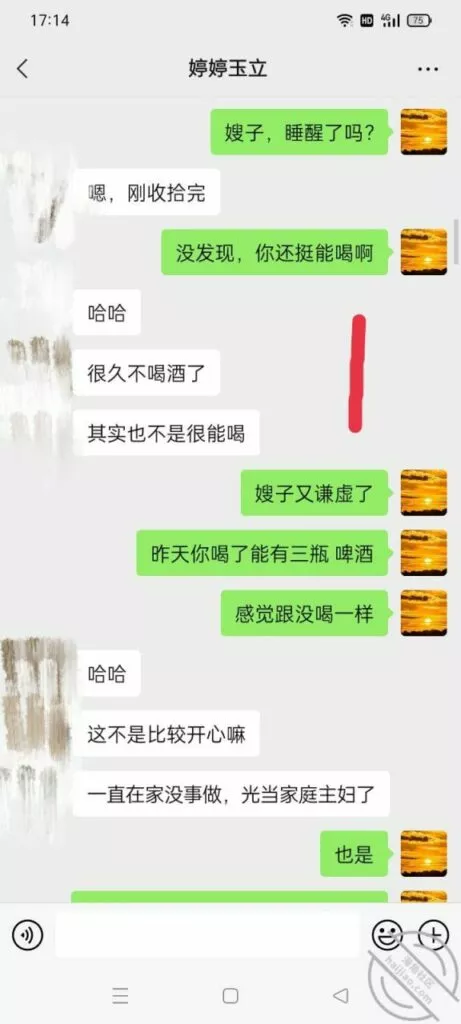 其实我也没喝多,但我就故意醉醺醺地去。酒醉说话方便嘛。虽然她vx上表现的有点抵触我,但我能感觉到她也挺高兴的。你们看她那句,你一个人去喝吗?多少稍微有点想去的意思,但是我觉得还是不能太急迫,也就没继续这个话题!