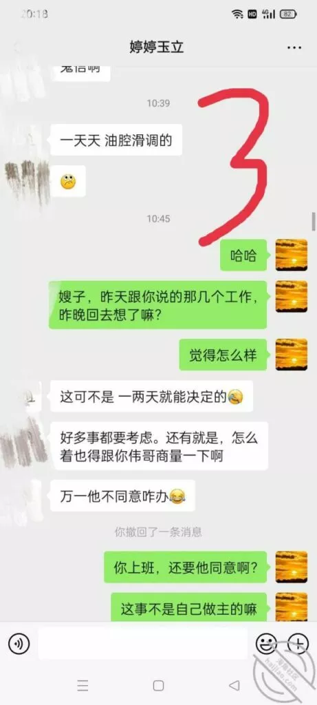 妈的其实我猜到了 她果然叫我别说了 还在这故作矜持 这种时候我们就要见好就收了不然就容易聊不下去了 换个话题缓和一下 她不是想要工作么 我就随便给她找一个,能不能上班还不一定呢, 让她欠我一个人情 趁机用喝扔茶的理由给她约出来