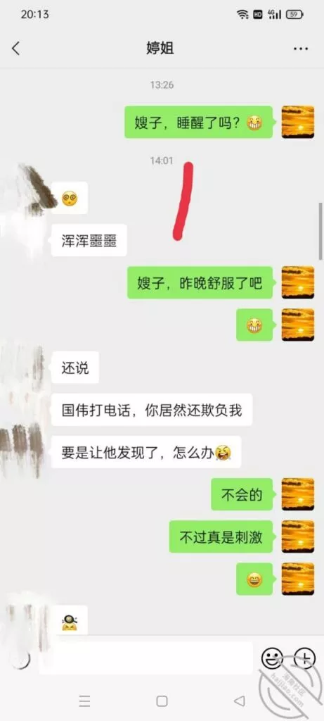 嫂子这个小母狗,真的是越来越大胆了,趁着国伟出去的时候居然与我调情,真的是搔啊,估计也是国伟回来,在床上没满足她,心里肯定不爽从聊天记录嫂子的语气中,不难看出,现在估计国伟在她心里,有没有都行了,在我这除了抱怨国伟,几乎就不说别的什么,估计在家里,跟国伟说的话,还不如跟我说的多呢,也是,谁让国伟满足不了自己的老婆呢,尤其是跟嫂子玩完SM,公厕,还有楼梯间后,现在我不光是拿下了嫂子的身体,也是征服了嫂子的心,这个小母狗其实内心就有一颗狂野的心,希望被人驯服,只是国伟没有开发出来!既然国伟没开发出来,只能是我来开发了,哈哈哈