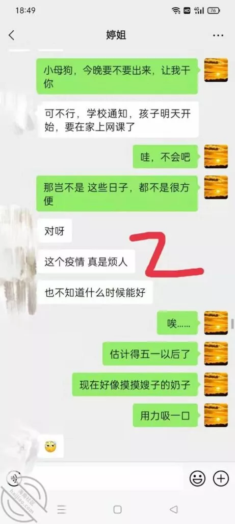 字里行间都是想要被我Cao,只不过她说的那个上网课确实有点麻烦了,这以后可咋Cao她啊,只能是让她安排好孩子,晚上出来开房了。不过说实话其实她不介意的话,我倒是也不介意被她儿子看到, 反正早晚的事嘛。万一再给他整出个弟弟来。哈哈哈
