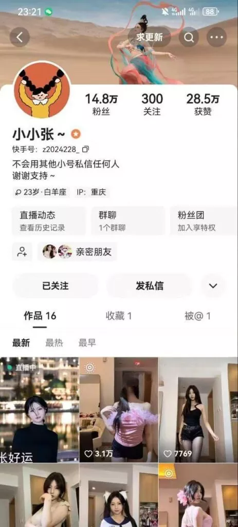快手15万粉丝擦边网红小小张,白天是在抖音直播卖车的女销售,晚上就变身成为福利姬,大尺度舞蹈信手拈来,可谓是相当反差的人生。