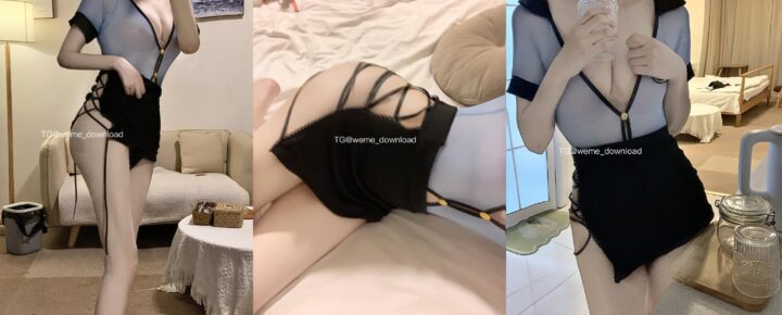 相扑猫蓝黑制服写真震撼全场:深V上衣与修身短裙,透纱材质展现优雅性感曲线(共25张图片)